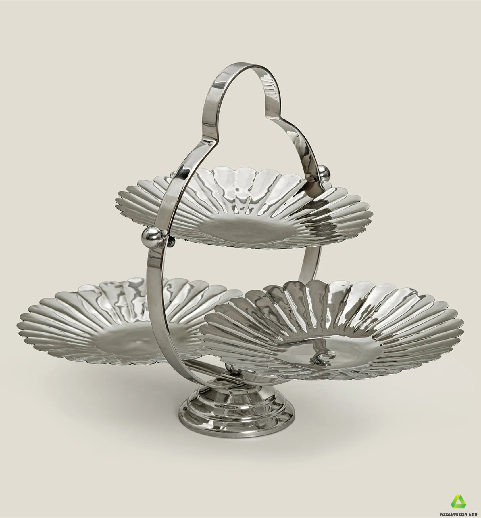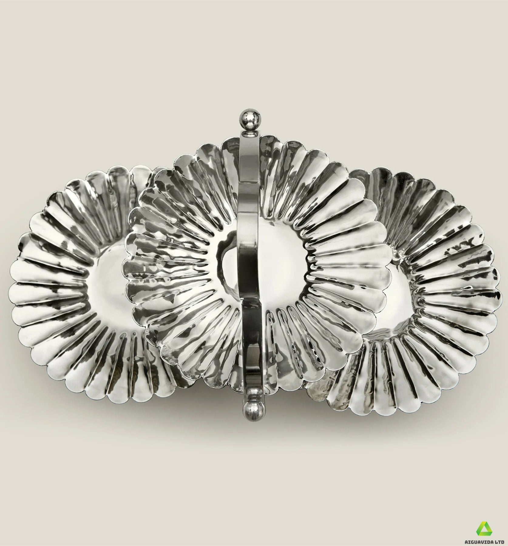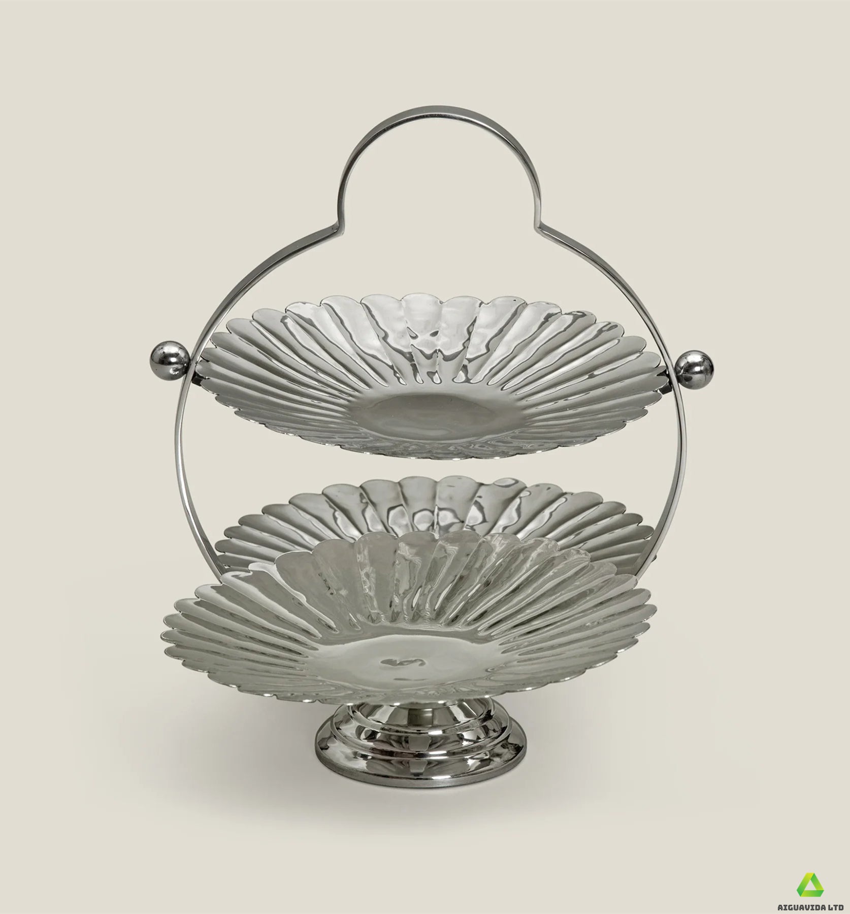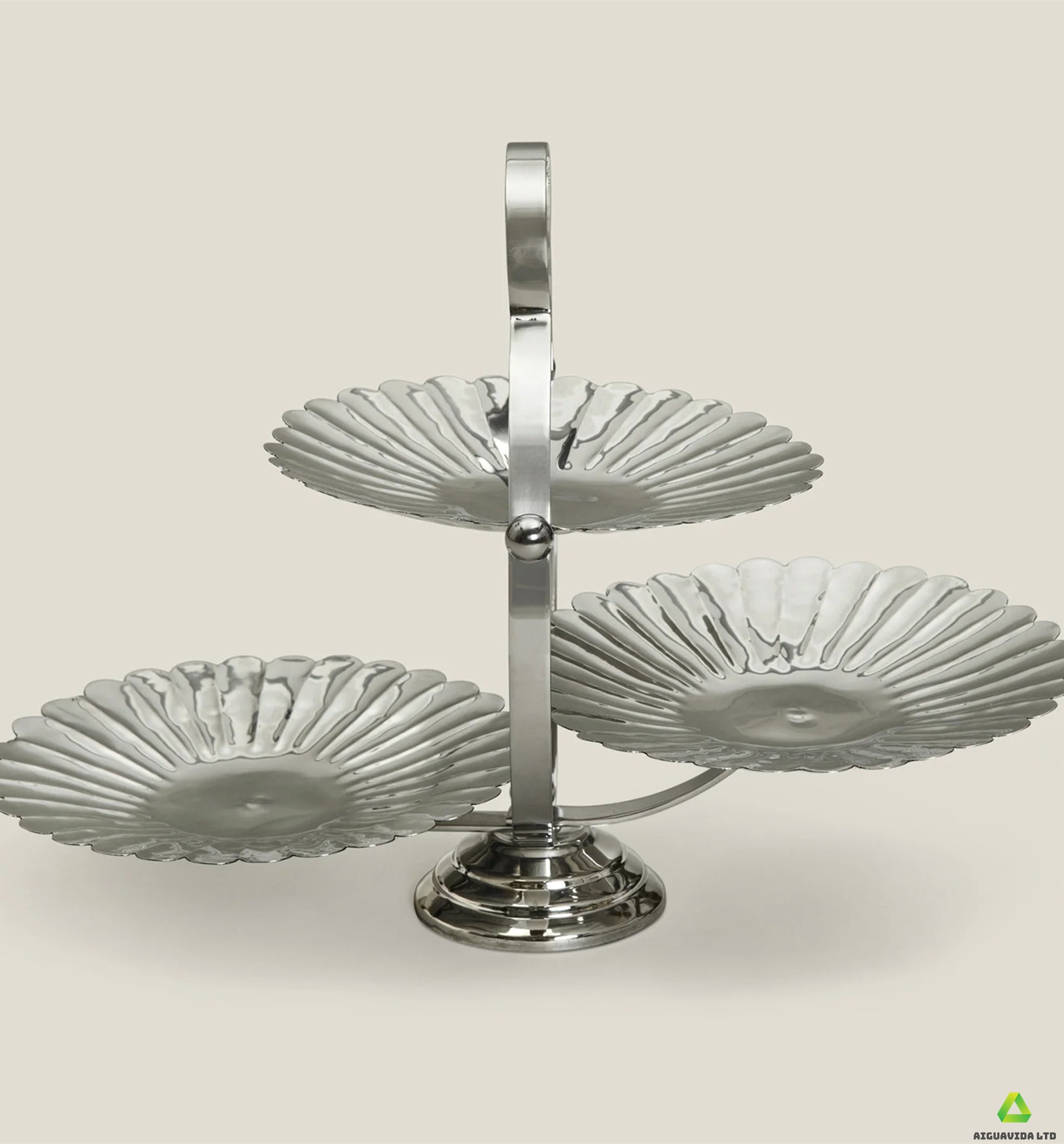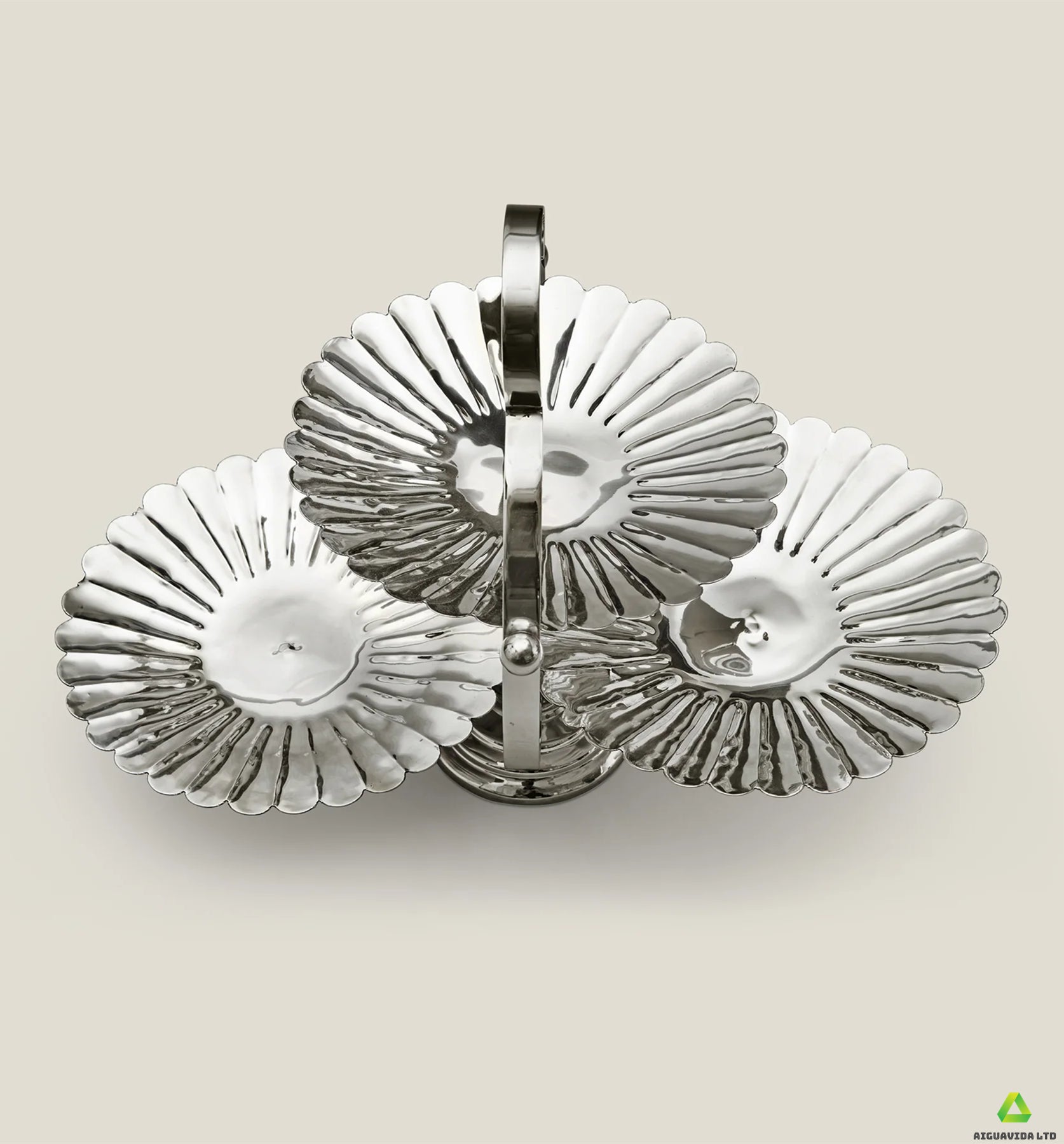 Inspired by nature, our beautiful three-tiered silver-plated dinner plates add a touch of floral flair to your home with a whimsical, modern touch. The metallic finish lends it a unique, stylish look. Whether displayed on a dessert table or coffee table, its design and details will truly stand out.